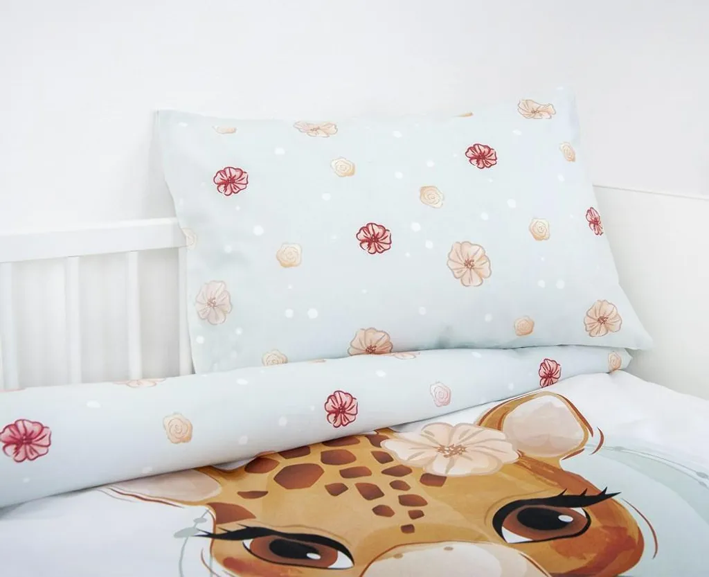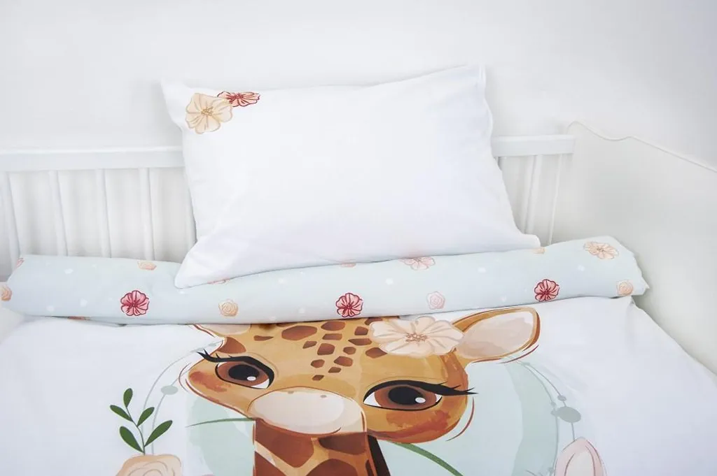 Милый дизайн с жирафом делает это удобное постельное белье настоящей приманкой для глаз в любой детской комнате и идеальным подарком. Благодаря своему компактному размеру это постельное белье для малышей идеально подходит для использования в дорожных кроватках, колыбельках, детских кроватках или первой большой кровати.
