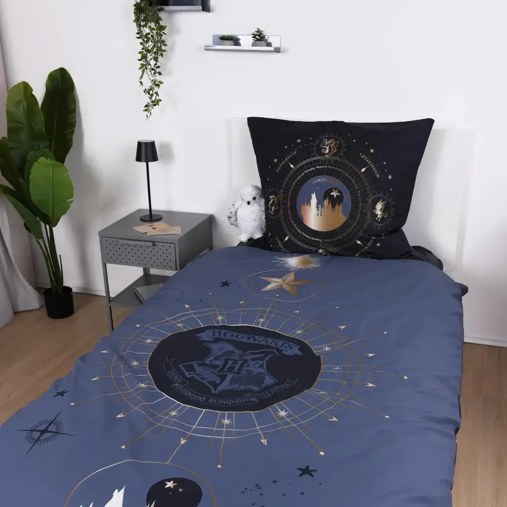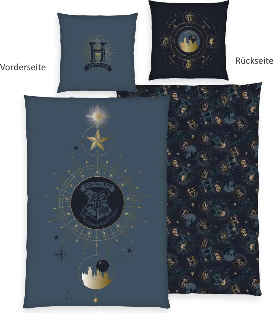 Идеальная идея для подарка на любой случай: Хлопковое постельное белье с волшебным мотивом Гарри Поттера - Быстро и легко надевается: наволочка и пододеяльник с застежкой на пуговицы - Высококачественный материал: 100% хлопок/перкаль, произведенный - Яркие цвета, Простота ухода: машинная стирка при 60°C, можно сушить в стиральной машине - Комплект поставки: 1 комплект постельного белья Herding, Harry Potter, 1 наволочка 80 x 80 см + 1 пододеяльник 135 x 200 см, цвет: синий, артикул: 4474449050