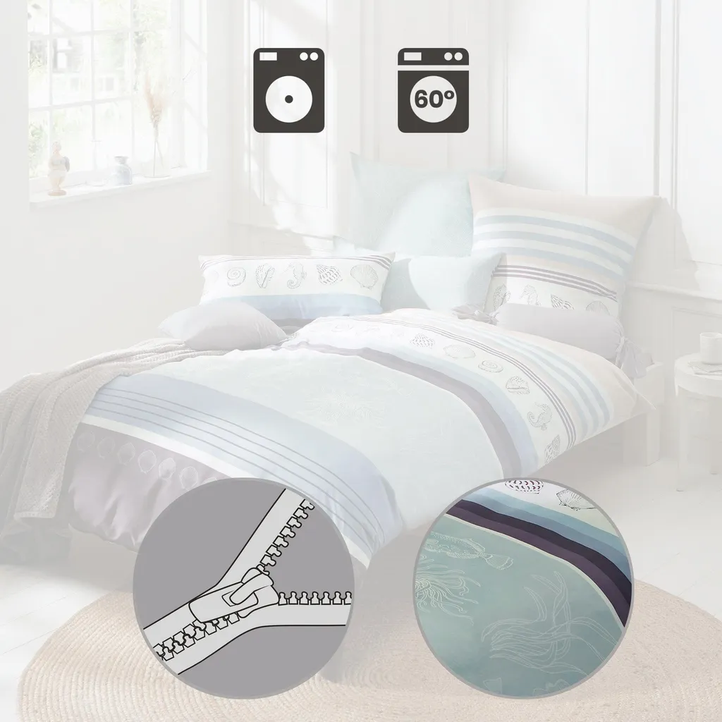 Наволочка Erwin Müller Mako из атласа. Ракушки украшают эту двустороннюю наволочку в натуральных цветах, создавая морское настроение. Погрузитесь в бархатистую, мягкую, плотную ткань. Ее шелковистый блеск пленяет и обеспечивает исключительный комфорт для сна. Наволочка дышащая и терморегулирующая, она дарит удовольствие вашей коже. Простая в уходе и легко надевается благодаря практичной молнии. Изготовлено из тончайшей расчесываемой и мерсеризованной хлопковой пряжи.