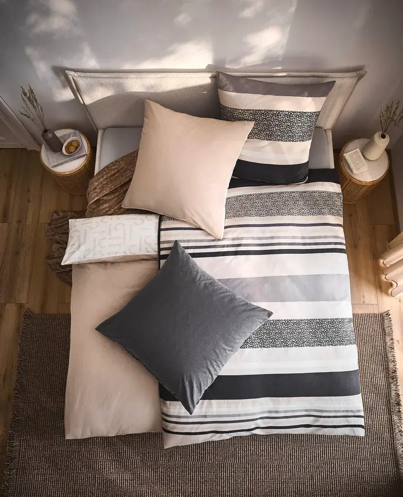 Esprit Bedding E-LEO STRIPE - Стильный и удобный Это постельное белье впечатляет не только своим привлекательным дизайном, но и превосходным качеством. Хлопок как основной материал обеспечивает естественную среду для сна и особенно прост в уходе. Сочетание полосок и леопардового принта придает комплекту современный, но в то же время классический вид, который гармонично впишется в любой интерьер. Выбирайте постельное белье Esprit E-LEO STRIPE и наслаждайтесь особым комфортом сна каждую ночь.