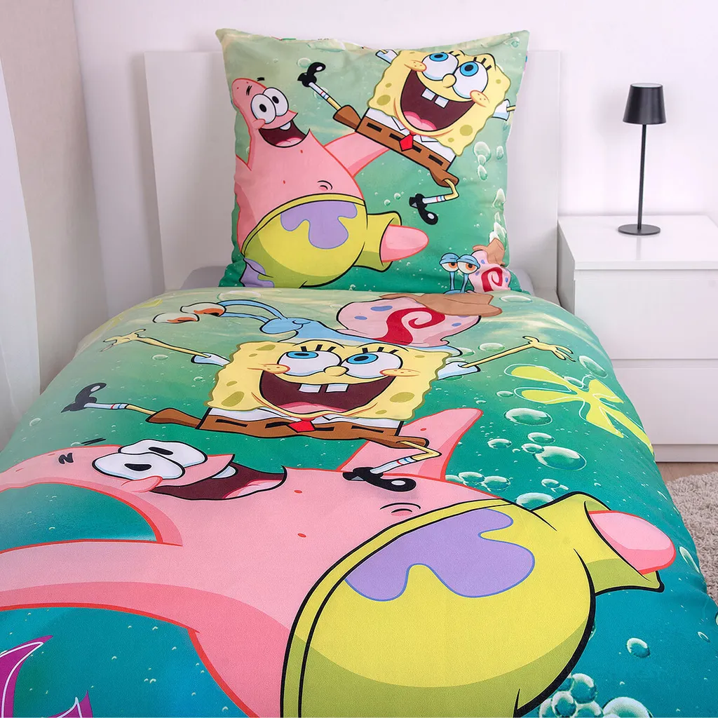 Гладкий и легкий комплект из чистого хлопка, который будет вас баловать, и украшен великолепным рисунком Губки Боба Квадратные Штаны с двух сторон. Разнообразие гарантировано ярким принтованным постельным бельем из коллекции Herding. Постельное белье Herding из мягкого перкаля долговечно и эластично. Тонкая ткань из чистого хлопка регулирует температуру, дышащая и простая в уходе. Еще одним положительным свойством этого хлопкового комплекта является долговечное качество перкаля. - Официально лицензированный комплект постельного белья - 1 наволочка 80 x 80 см - 1 пододеяльник 135 x 200 см - Материал: 100% хлопок Бренд: Лицензированный Материал: 100% хлопок В комплект входит наволочка и пододеяльник Размеры пододеяльника: Длина 200 x Ширина 135 см см