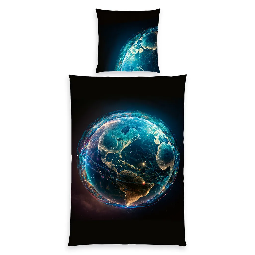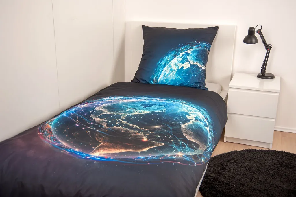 Этот удобный комплект постельного белья с популярным дизайном в виде глобуса станет настоящей приманкой для глаз в любой спальне. Вы будете наслаждаться этим комплектом постельного белья долгое время благодаря его ярким цветам и плавно работающей высококачественной молнии.