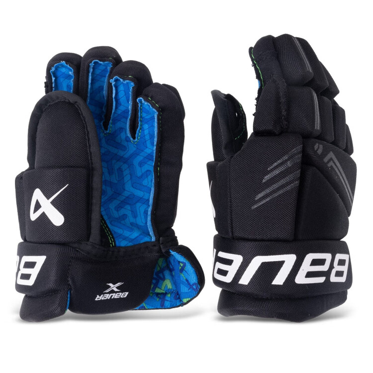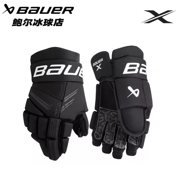 BAUER Хоккейные перчатки 2024, X Beginner, детские и взрослые, 28 см, черные