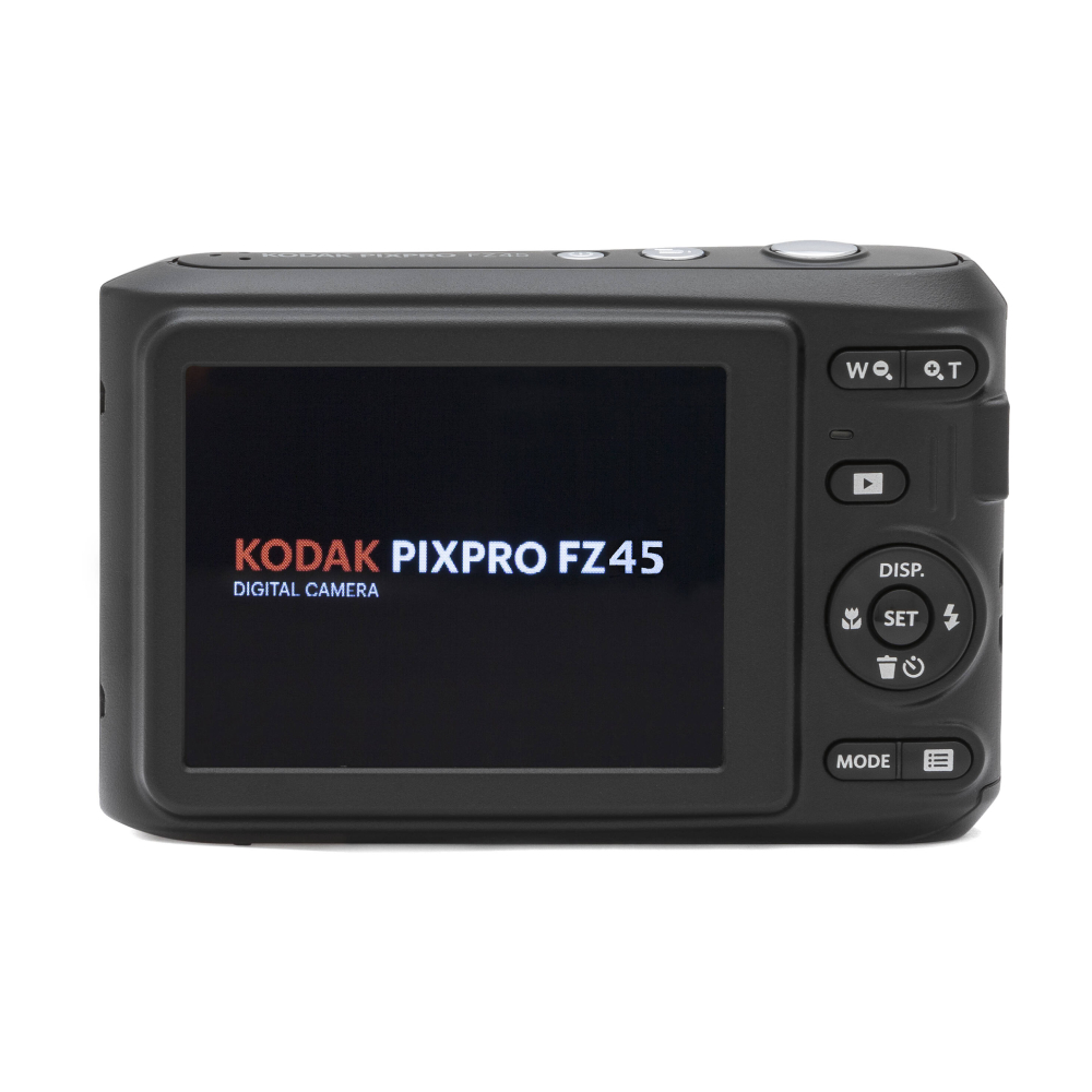 Цифровая камера Kodak Pixpro FZ45 — это компактная чёрная «наводи-и-снимай» камера, одна из моделей с удобным зумом из линейки цифровых камер Kodak Pixpro.