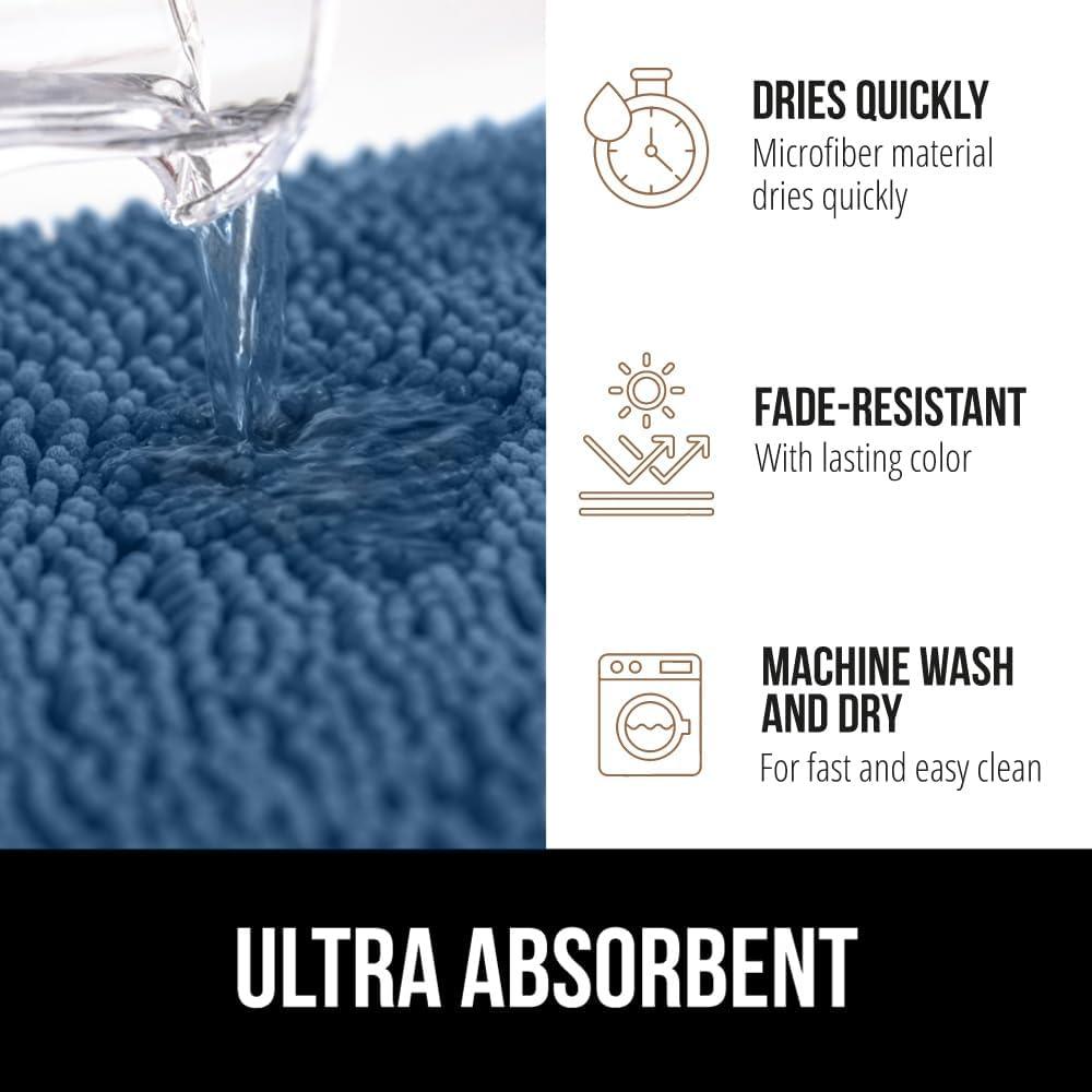 Коврик для ванной Gorilla Grip имеет впитывающий верхний слой из шенилла, который быстро удаляет влагу с ног. Его плотная резиновая подложка надёжно фиксирует коврик на полу, предотвращая скольжение. Благодаря быстросохнущим материалам, он остаётся гигиеничным и препятствует образованию плесени. Продукт идеально сочетает безопасность, удобство и практичность для ежедневного использования.