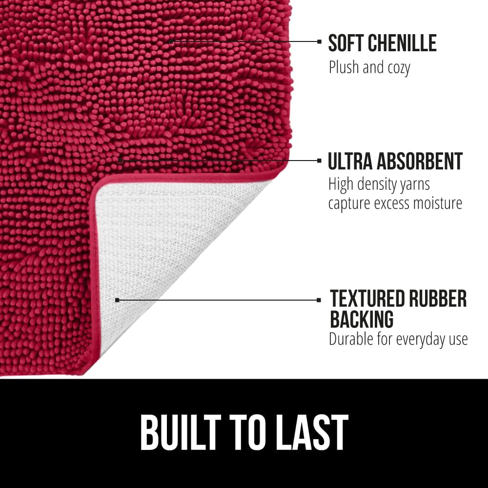 Коврик для ванной Gorilla Grip имеет впитывающий верхний слой из шенилла, который быстро удаляет влагу с ног. Его плотная резиновая подложка надёжно фиксирует коврик на полу, предотвращая скольжение. Благодаря быстросохнущим материалам, он остаётся гигиеничным и препятствует образованию плесени. Продукт идеально сочетает безопасность, удобство и практичность для ежедневного использования.