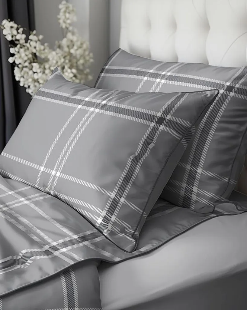 Постельное белье, перкаль, с кантом, элегантное 160x200 5240a Серая клетка 7 590₽
