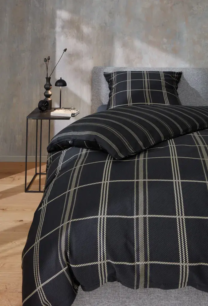 Побалуйте себя изысканным постельным бельем SQUARE - гармоничным сочетанием графического клетчатого узора и тонких горизонтальных полос.