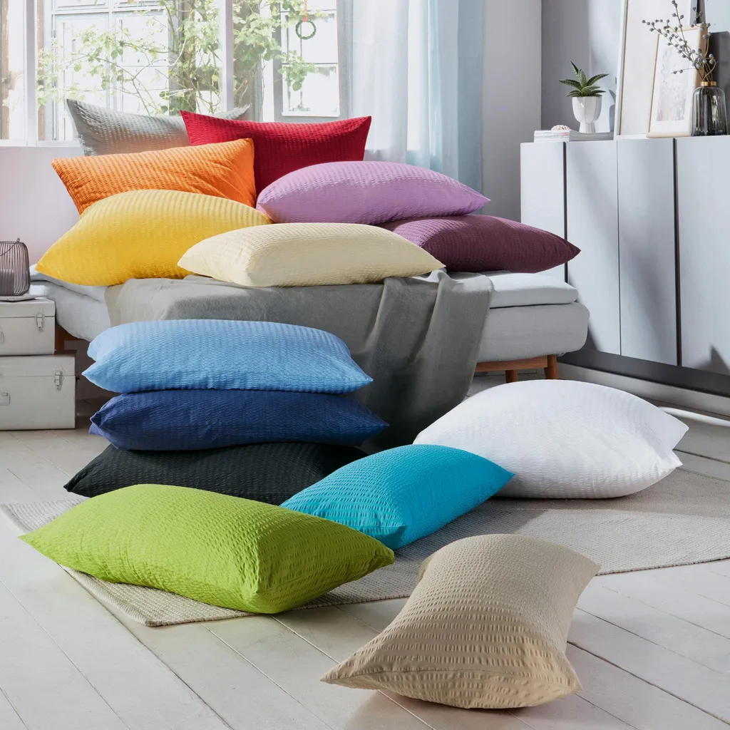 Наволочка из жатой ткани Розенхайм от Erwin Müller. Однотонная, эта сдержанная наволочка легко впишется в любой интерьер спальни. В теплое время года тонкая ткань дарит ощущение легкости и воздушности. Благодаря особой мятой текстуре ткань не соприкасается с кожей полностью, обеспечивая циркуляцию воздуха. Проста в уходе, не мнется и пропускает воздух. Практичная молния делает смену наволочки невероятно простой.