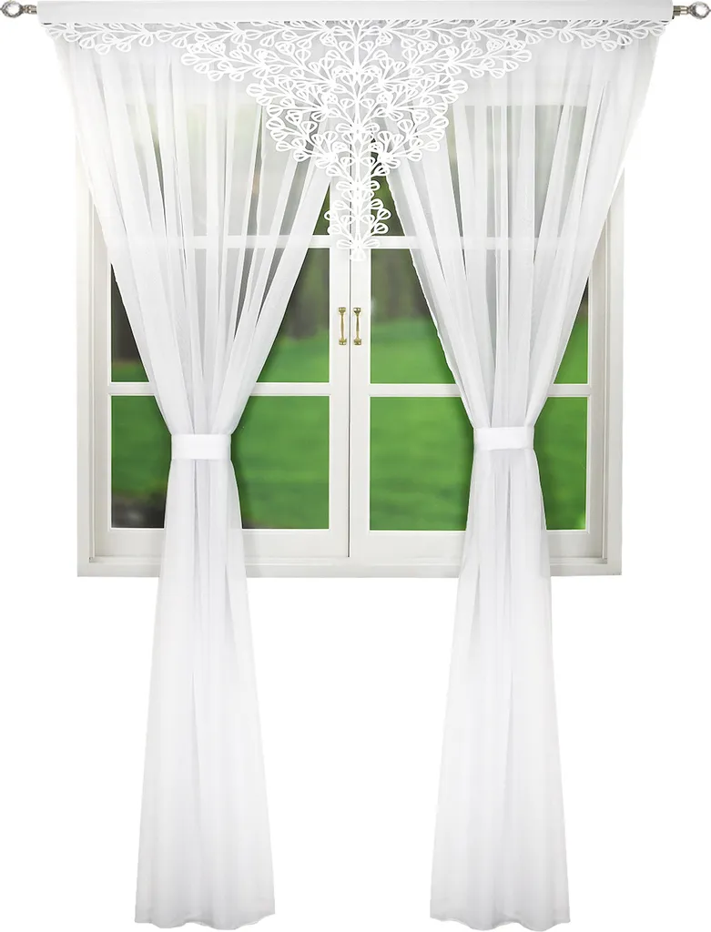 Элегантные шторы из вуали. В комплект также входит панель из плотного и жесткого фетра. Назначение: Панель идеально впишется в гламурные, классические и современные интерьеры. Она ненавязчиво подчеркнет характер комнаты. Идеально подойдет для парадной гостиной, функциональной столовой или стильной кухни. Украсит окно как самостоятельно, так и в сочетании со шторами. Способ подвешивания: Можно повесить непосредственно на трубчатый карниз или на крючки. Шторы Hvar Panel 400x250 VOILE Ажурная вуаль