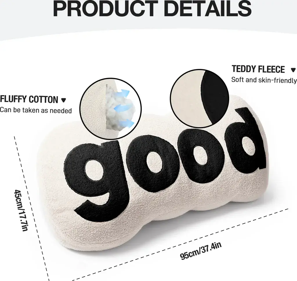 Подушка для изголовья, подушка для поддержки спины, фиксированного размера, доступна в трех цветах: черном, желтом и белом. Рисунок устойчив к выцветанию. Без пуговиц. УЛУЧШЕННЫЙ МАТЕРИАЛ: (с наполнителем из полипропиленового хлопка) Изготовлена из зернистого бархата, мягкая и комфортная. Эта ткань была тщательно отобрана за ее качество и удобство использования, а также за дополнительную прочность и долговечность. Коротковорсистая плюшевая ткань повышает комфорт для кожи и мягкость подушки, что делает ее отличной подушкой для поддержки спины и украшения кровати. Подушка средней толщины: Средняя толщина не занимает много места на кроватях и диванах, оставляя вам достаточно места для комфортного сидения. Подушки для изголовья обеспечивают оптимальную поддержку верхней части тела и помогают предотвратить многие проблемы со здоровьем. Различные размеры подходят для различных ситуаций, облегчая бессонницу и боли в скелетных мышцах, помогая пожилым людям с варикозным расширением вен и поддерживая любителей йоги во время упражнений на растяжку. Идеальный подарок: Плюшевая подушка для изголовья размера Twin усиливает ощущение объема и идеально отражает эргономичный дизайн. Идеальная толщина и поддержка для комфортного сна, чтения и отдыха в постели. Надпись GOOD, которая не выцветает, поможет вам расслабиться. КРАСИВАЯ И ПРАКТИЧНАЯ ПОДУШКА - Наша подушка для изголовья кровати станет модным украшением дома и подойдет для кроватей, диванов, кушеток, татами, скамеек, шезлонгов, подоконников, спален, эркеров, всесезонных комнат, кроватей в общежитиях, студенческих кроватей, детских кроватей и изголовий.