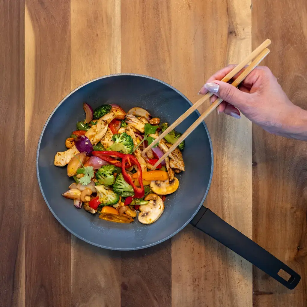 Усовершенствованное керамическое антипригарное покрытие 5-го поколения обеспечивает исключительную производительность. Наслаждайтесь легким приготовлением пищи с минимальным количеством масла и простой очисткой. Эта технология превращает каждый прием пищи в удовольствие.