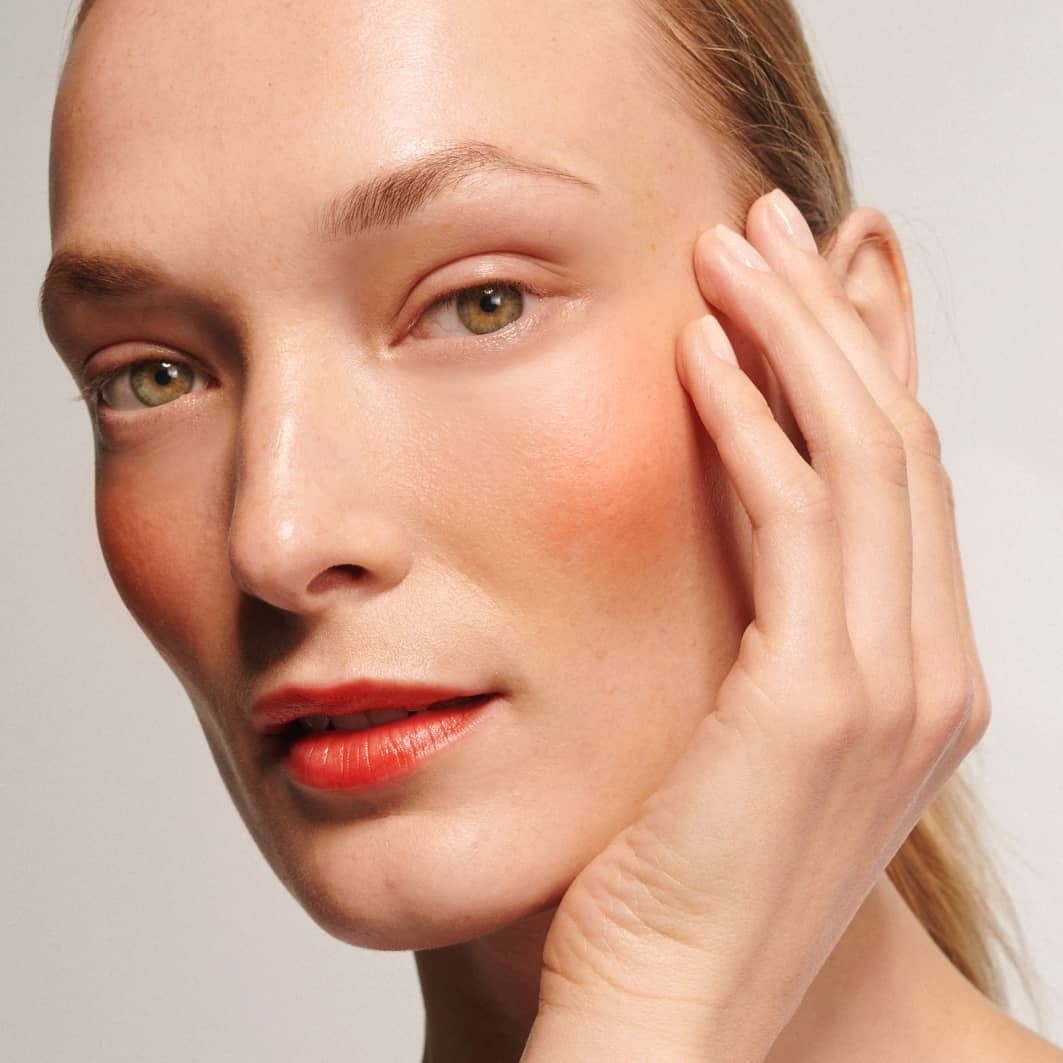 Нанесите на щеки и растушуйте кистью или кончиками пальцев.