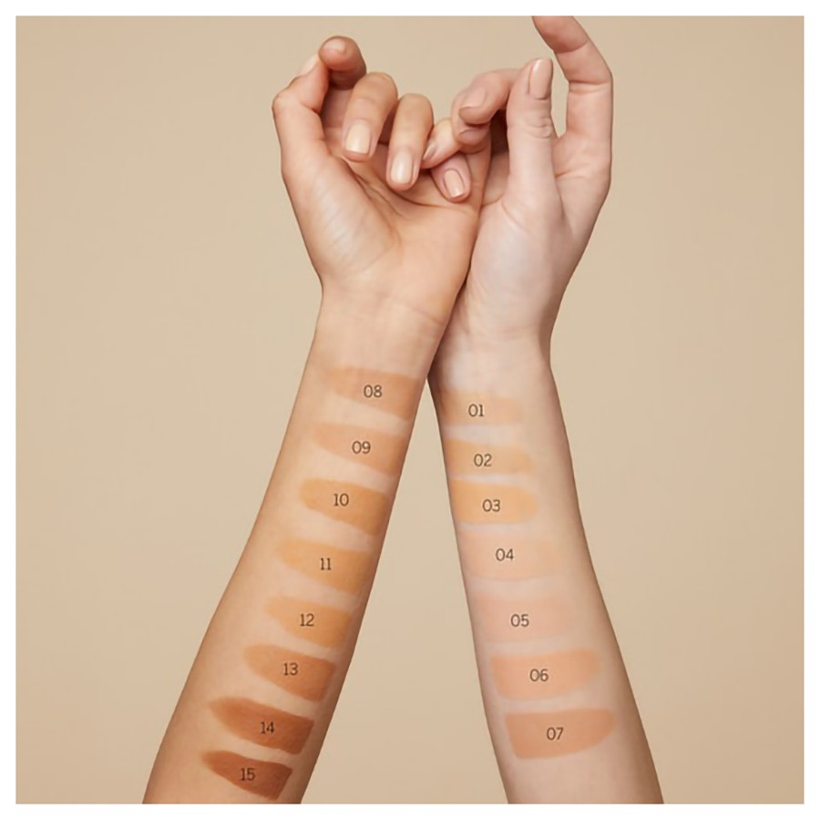 Наносите с помощью кисти для макияжа, спонжа или пальцами от центра лица к краям. Аккуратно разгладьте по внешним краям (линия роста волос, линия подбородка).
