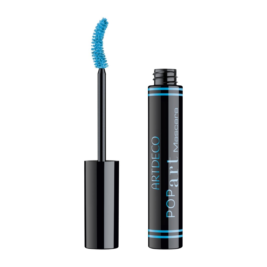 Нанесите тушь в стиле поп-арт на ресницы с помощью изогнутой щеточки, чтобы придать им цвет и объем. Нанесите тушь на ресницы от корней до кончиков.