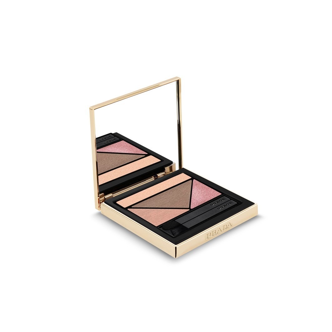 Четыре восхитительных оттенка теней для век в одной палетке, обогащенной питательным маслом ореха инка, с безупречным финишем и комфортной стойкостью до 12 часов, с двумя практичными мини-аппликаторами, вдохновленными модными принтами из архива Prada.