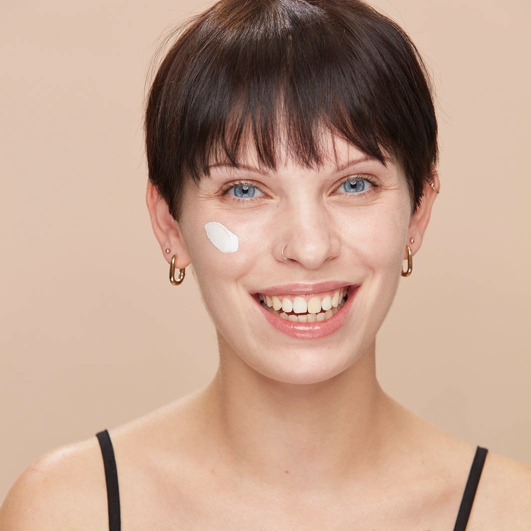 Нанесите небольшое количество крема на лицо и шею пальцами и равномерно распределите.