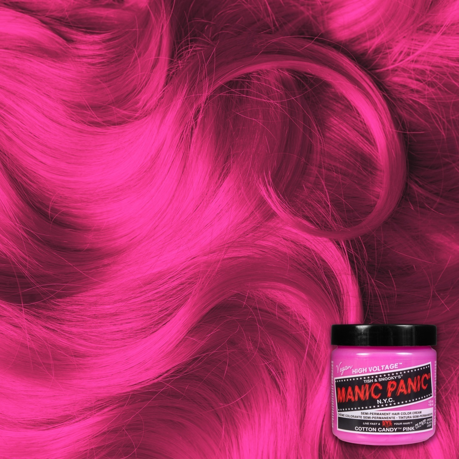 6. Затем промойте волосы холодной водой, пока вода не станет прозрачной. Избегайте контакта с лицом и телом, и не мойте волосы после этого шампунем. 7. Теперь вы можете уложить волосы по желанию. Однако убедитесь, что ваши волосы полностью сухие, чтобы предотвратить перенос цвета. Советы: 1. Предварительно проверьте цвет на пряди волос, чтобы увидеть, нравится ли вам результат и как ваша кожа головы переносит продукт. 2. Используйте шампунь с нейтральным pH перед окрашиванием, чтобы помочь цвету лучше впитаться. 3. После нанесения цвета прогрейте волосы феном в течение 5-10 минут. Это откроет кутикулу волоса и усилит результат. Однако ваши волосы должны полностью остыть перед смыванием. 4. В период после окрашивания используйте освежитель для волос Manic Panic и укладывайте волосы только на низкой температуре. Это поможет цвету дольше оставаться свежим. Краска предназначена только для наружного применения. Используйте только по назначению и храните в недоступном для детей месте. Краска не подходит для окрашивания бровей или ресниц. При попадании в глаза немедленно промойте чистой водой и при необходимости обратитесь к врачу.