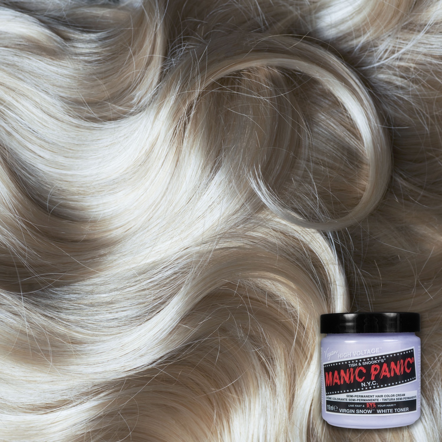 6. Затем промойте волосы холодной водой, пока вода не станет прозрачной. Избегайте контакта с лицом и телом, и не мойте волосы после этого шампунем. 7. Теперь вы можете уложить волосы по желанию. Однако убедитесь, что ваши волосы полностью сухие, чтобы предотвратить перенос цвета. Советы: 1. Предварительно проверьте цвет на пряди волос, чтобы увидеть, нравится ли вам результат и как ваша кожа головы переносит продукт. 2. Используйте шампунь с нейтральным pH перед окрашиванием, чтобы помочь цвету лучше впитаться. 3. После нанесения цвета прогрейте волосы феном в течение 5-10 минут. Это откроет кутикулу волоса и усилит результат. Однако ваши волосы должны полностью остыть перед смыванием. 4. В период после окрашивания используйте освежитель для волос Manic Panic и укладывайте волосы только на низкой температуре. Это поможет цвету дольше оставаться свежим. Краска предназначена только для наружного применения. Используйте только по назначению и храните в недоступном для детей месте. Краска не подходит для окрашивания бровей или ресниц. При попадании в глаза немедленно промойте чистой водой и при необходимости обратитесь к врачу.