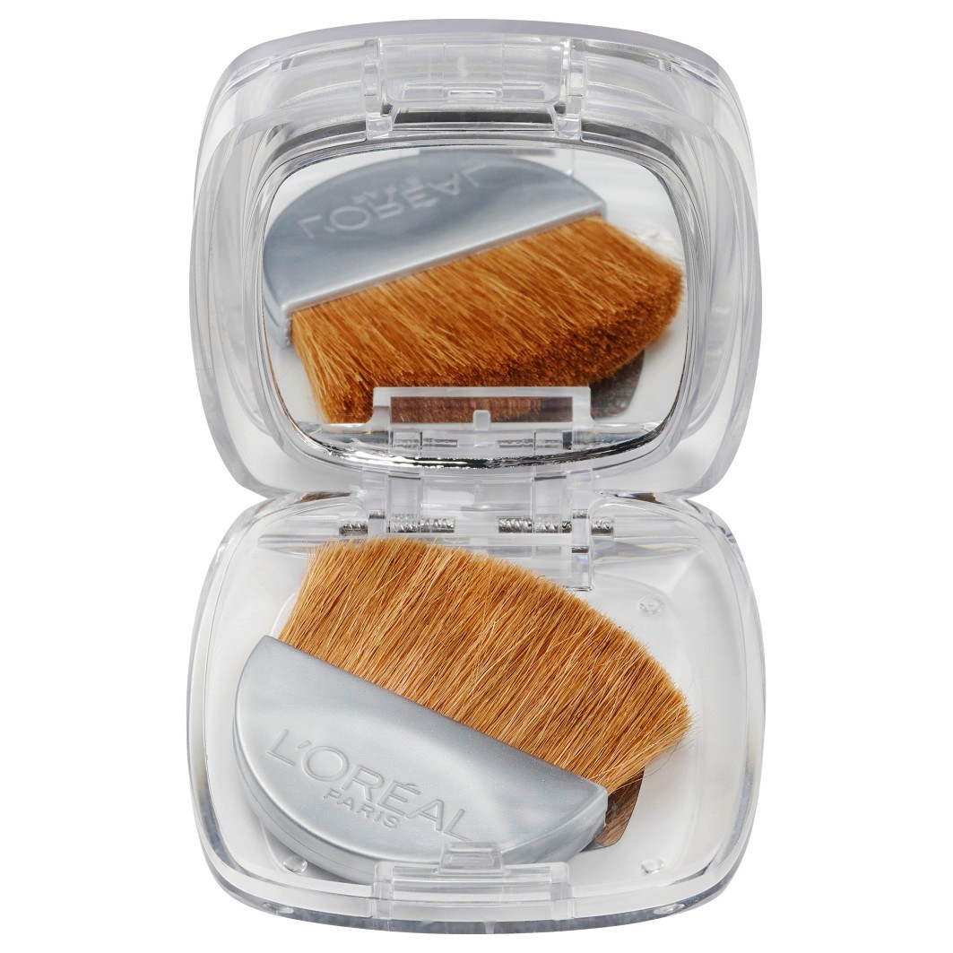 Нанесите пудру на скулы кистью и растушуйте.