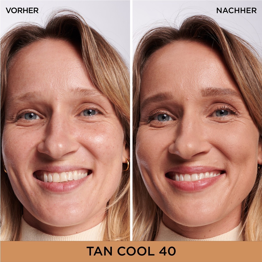Мощное сочетание консилера и сыворотки обеспечивает наращиваемое покрытие, уменьшает темные пятна благодаря ниацинамиду, гиалуроновой кислоте и кофеину, не забивается в морщины.