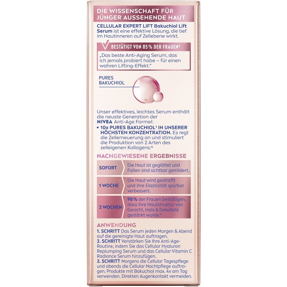 Наносите сыворотку утром и вечером на очищенную кожу лица, шеи и декольте. Для оптимального лифтинг-эффекта сочетайте с дневным и ночным кремом Expert Lift. Используйте средства, содержащие бакучиол, не более 4 раз в день. Избегать попадания в глаза.