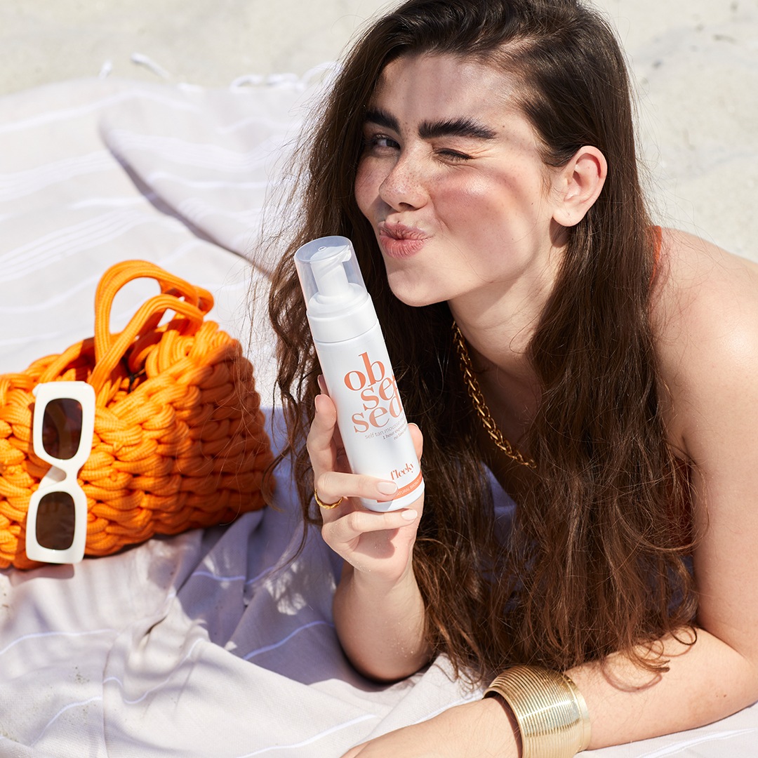 Шаг 2 - Нанесите мусс на тело и равномерно распределите круговыми движениями с помощью нашей рукавицы или кисти кабуки. Нанесите мусс экономно на локти, колени и лодыжки. Тщательно вымойте руки после нанесения.