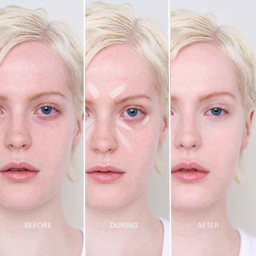 1. Нанесите консилер непосредственно на нужные области с помощью стика, пальца или кисти. Для целенаправленного сокрытия покраснений, темных кругов или высыпаний, для естественного, отдохнувшего вида с матовым эффектом мягкого фокуса.