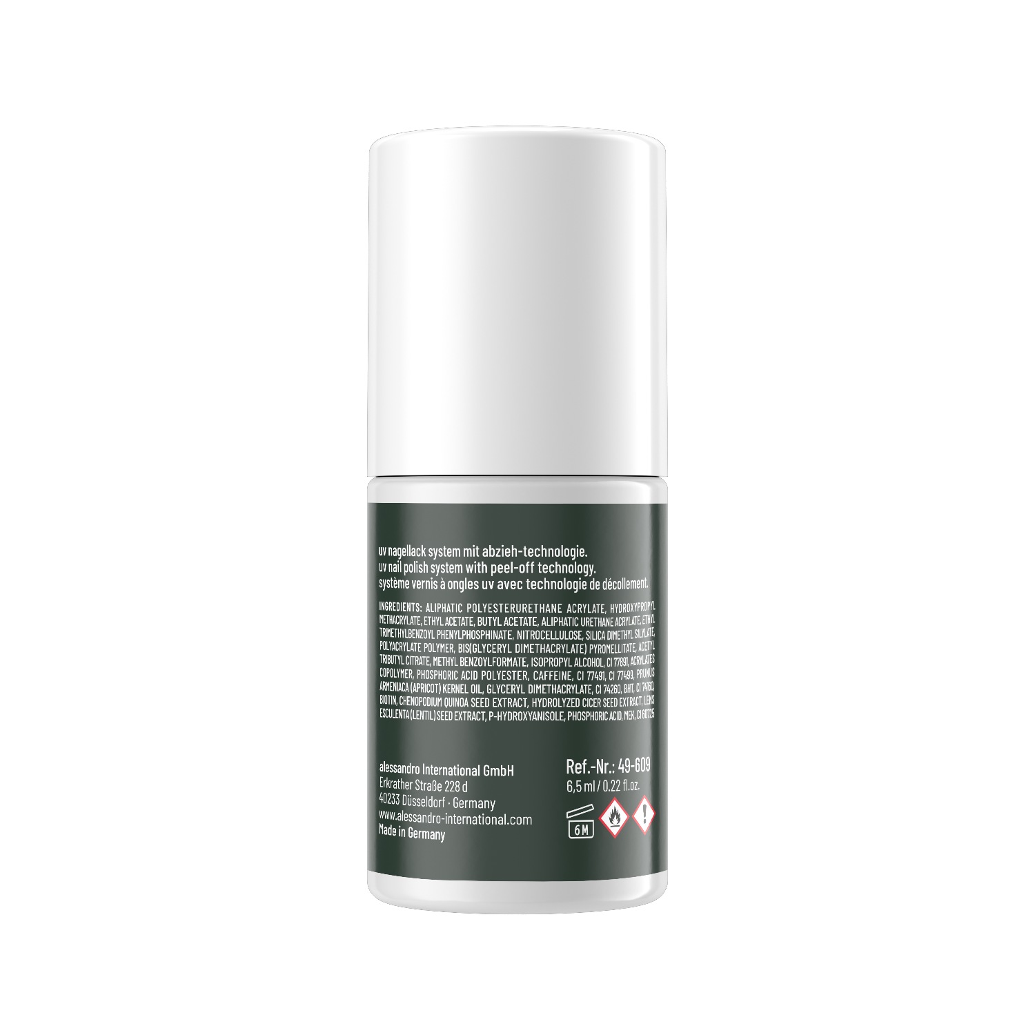 Состав: АЛИФАТИЧЕСКИЙ ПОЛИЭСТЕРУРЕТАНАКРИЛАТ, ГИДРОКСИПРОПИЛМЕТАКРИЛАТ, ЭТИЛАЦЕТАТ, БУТИЛАЦЕТАТ, НИТРОЦЕЛЛЮЛОЗА, ПОЛИАКРИЛАТНЫЙ ПОЛИМЕР, ДИМЕТИЛСИЛИЛАТ КРЕМНИЯ, БИС(ГЛИЦЕРИЛДИМЕТАКРИЛАТ)ПИРОМЕЛЛИТАТ, АЦЕТИЛТРИБУТИЛЦИТРАТ, ЭТИЛТРИМЕТИЛБЕНЗОИЛФЕНИЛФОСФИНАТ, МЕТИЛБЕНЗОИЛФОРМАТ, ИЗОПРОПИЛОВЫЙ СПИРТ, СОПОЛИМЕР АКРИЛАТОВ, АЛИФАТИЧЕСКИЙ УРЕТАНАКРИЛАТ, КОФЕИН, ЯДРА АБРИКОСА (PRUNUS ARMENIACA) Масло, глицерилдиметакрилат, CI 77891, полиэфир фосфорной кислоты, биотин, экстракт семян киноа (Chenopodium QUINOA), гидролизованный экстракт семян цицерии (Cicer), экстракт семян чечевицы (Lens Esculenta), пара-гидроксианизол, бутилгидрокситолуол (BHT), метилэтилкетон (MEK), фосфорная кислота, CI 60725