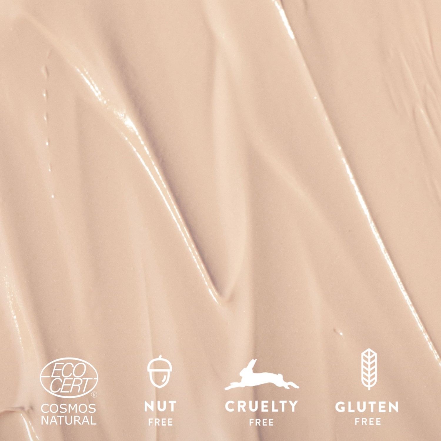 Состав: сок листьев алоэ вера (алоэ); дикаприлил карбонат; изоамил лаурат; оксиды цинка; глицерин; пчелиный воск (cera alba); сорбитан оливат; CI 77891 (диоксид титана); лецитин; полиглицерил-2 диполигидроксистеарат; кремний; вода; хлорид натрия; целлюлоза; экстракт плодов облепихи крушиновидной (hippophae rhamnoides); сорбитан каприлат; Пальмитиновая кислота; Стеариновая кислота; CI 77491 (оксиды железа); CI 77492 (оксиды железа); CI 77499 (оксиды железа); Лимонная кислота; Экстракт зверобоя продырявленного (HYPERICUM PERFORATUM); Пропандиол; Каприлилгликоль; Бензойная кислота; Аскорбилпальмитат; Фитат натрия; Токоферол; Экстракт листьев черного чая (CAMELLIA SINENSIS); Экстракт коры дуба (QUERCUS ROBUR); Экстракт виноградных косточек (VITIS VINIFERA); Ванилин; Бензоат натрия; Гидролизованная гиалуроновая кислота; Гиалуронат натрия; Сорбат калия