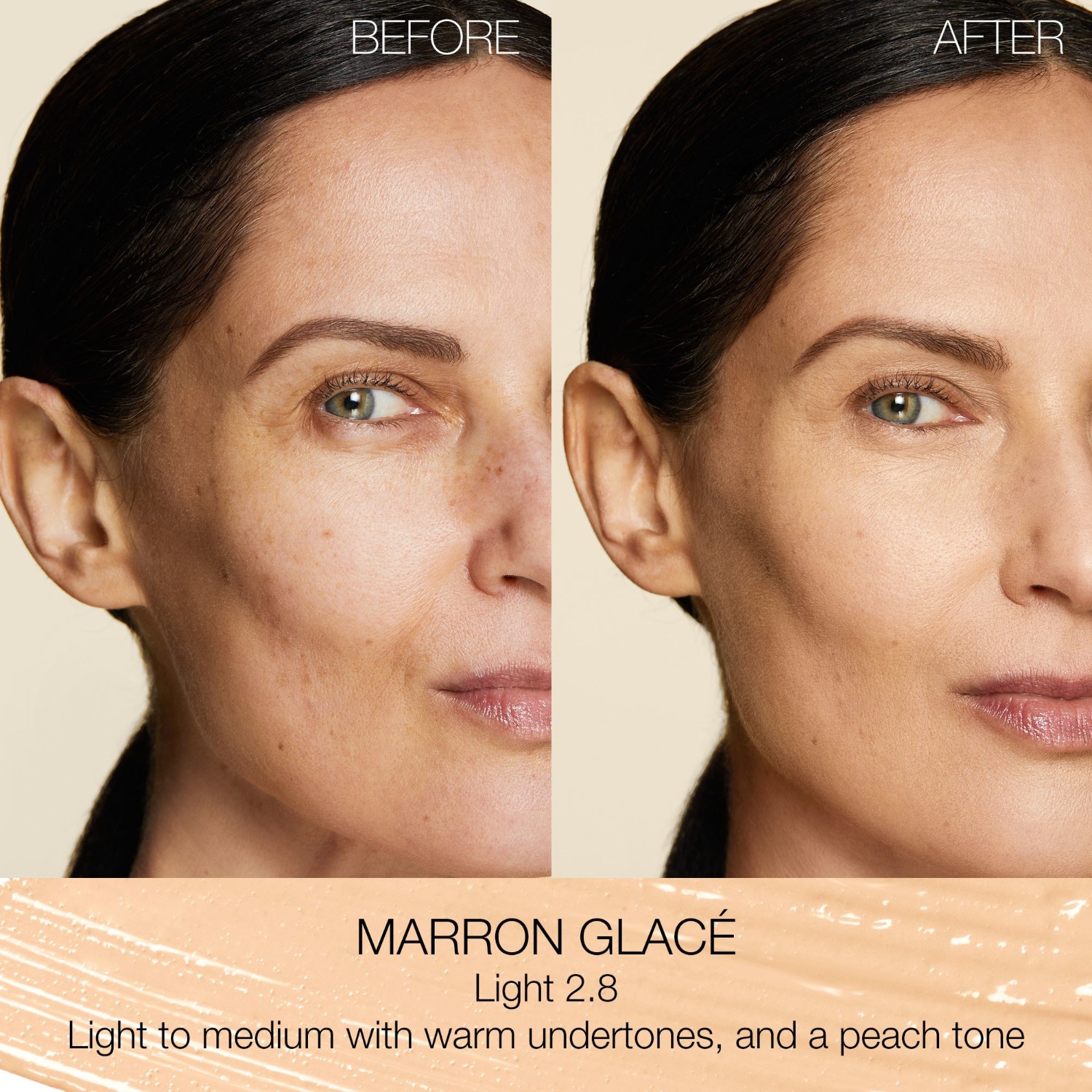 Наносите консилер аппликатором, кончиками пальцев или кистью NARS № 12 Cream Blending Brush. Чтобы использовать его в качестве хайлайтера, выберите оттенок на два тона светлее вашего естественного тона кожи и нанесите его на выступающие части лица. Для большего объема и контурирования выберите цвет на два тона темнее вашего естественного тона кожи и растушуйте его на щеках и висках, а также вдоль линии роста волос и подбородка. Состав: вода/AQUA/EAU, диметикон, гидрогенизированный полидецен, пропандиол, бутиленгликоль, ПЭГ-9 полидиметилсилоксиэтилдиметикон, глицерин, дистеардимония гекторит, ПЭГ-10 диметикон, метилметакрилатный сшитый сополимер, бис-бутилдиметикон полиглицерил-3, сорбитан сесквиизостеарат, экстракт косточек винограда (VITIS VINIFERA), экстракт коры магнолии лекарственной (Magnolia officinalis), токоферол, токоферилацетат, лецитин метабисульфит натрия, кремний, диметикон/винилдиметикон Кроссполимер, триэтоксикаприлилсилан, изостеариновая кислота, мальтодекстрин, полисиликон-2, гидроксид алюминия, тринатрий ЭДТА, оксид олова, феноксиэтанол, слюда, диоксид титана (CI 77891), оксиды железа (CI 77491), оксиды железа (CI 77492), оксиды железа (CI 77499)