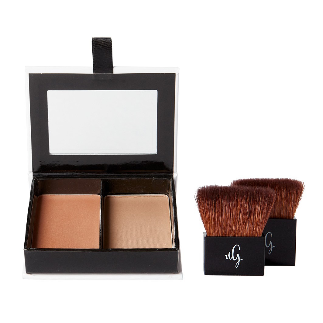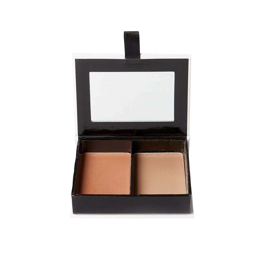 Для легкого нанесения в двухкомпонентной пудренице с зеркальцем и двумя кисточками из стриженой козьей шерсти - для набора идеального количества пудры.