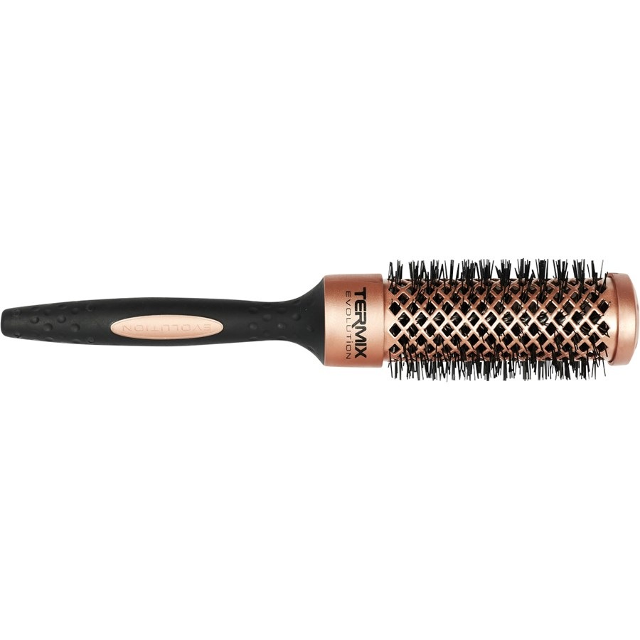 Круглые щетки Evolution Gold Rose от TERMIX доступны в различных размерах и облегчают укладку волос. Эта лимитированная серия особенно подходит для ухода за сухими, тусклыми или безжизненными волосами. Результат: после обработки волосы выглядят здоровыми и ухоженными. Evolution Gold Rose от TERMIX доступна в пяти различных размерах. Профессиональная круглая щетка от TERMIX состоит из ионизированных нейлоновых волокон и трубки PTFC. Последняя удерживает тепло от фена и сушит волосы вдвое быстрее, чем обычные алюминиевые щетки. Продукт доступен в пяти различных размерах: диаметр щеток составляет 17, 23, 28, 32 или 43 см. Состав волокон и технология трубки круглых щеток разработаны для значительно более быстрой сушки волос. Экстремальное нагревание не требуется. Легко придавайте форму и выпрямляйте волосы с помощью круглой щетки Evolution Gold Rose. Продукт прост в использовании благодаря удобной конструкции: эргономичная ручка круглой щетки легко захватывается и облегчает уход за волосами во время сушки. Точная насадка обрабатывает волосы от корней до кончиков во время расчесывания. Перед укладкой рекомендуется нанести на волосы термозащитное средство.