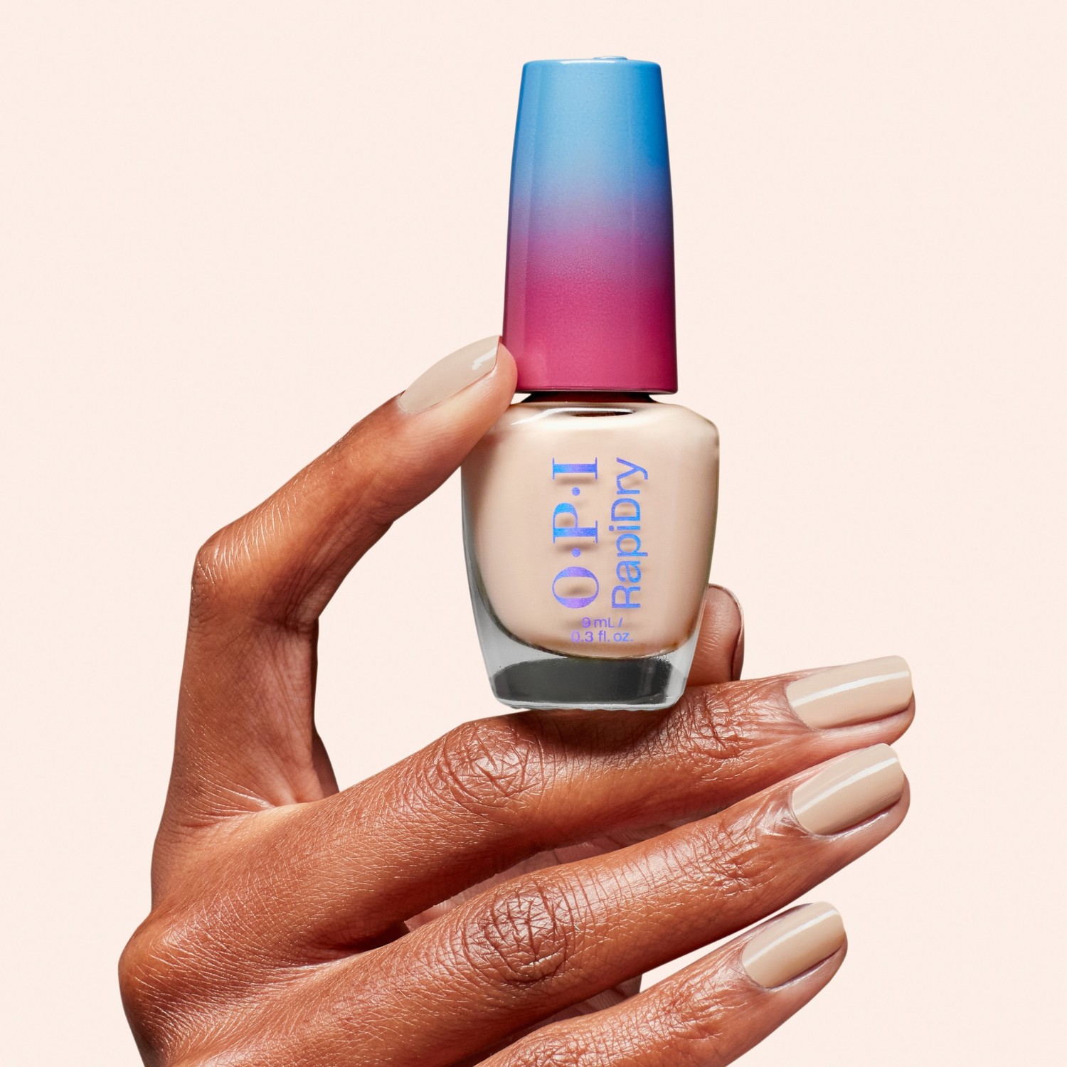 Энергично встряхните лак, чтобы хорошо перемешать содержимое. Подготовьте ногти и кутикулу для оптимального сцепления: отодвиньте кутикулу, подрежьте, подпилите и отполируйте. Нанесите тонкий слой любого быстросохнущего лака RapiDry и запечатайте свободный край ногтя.