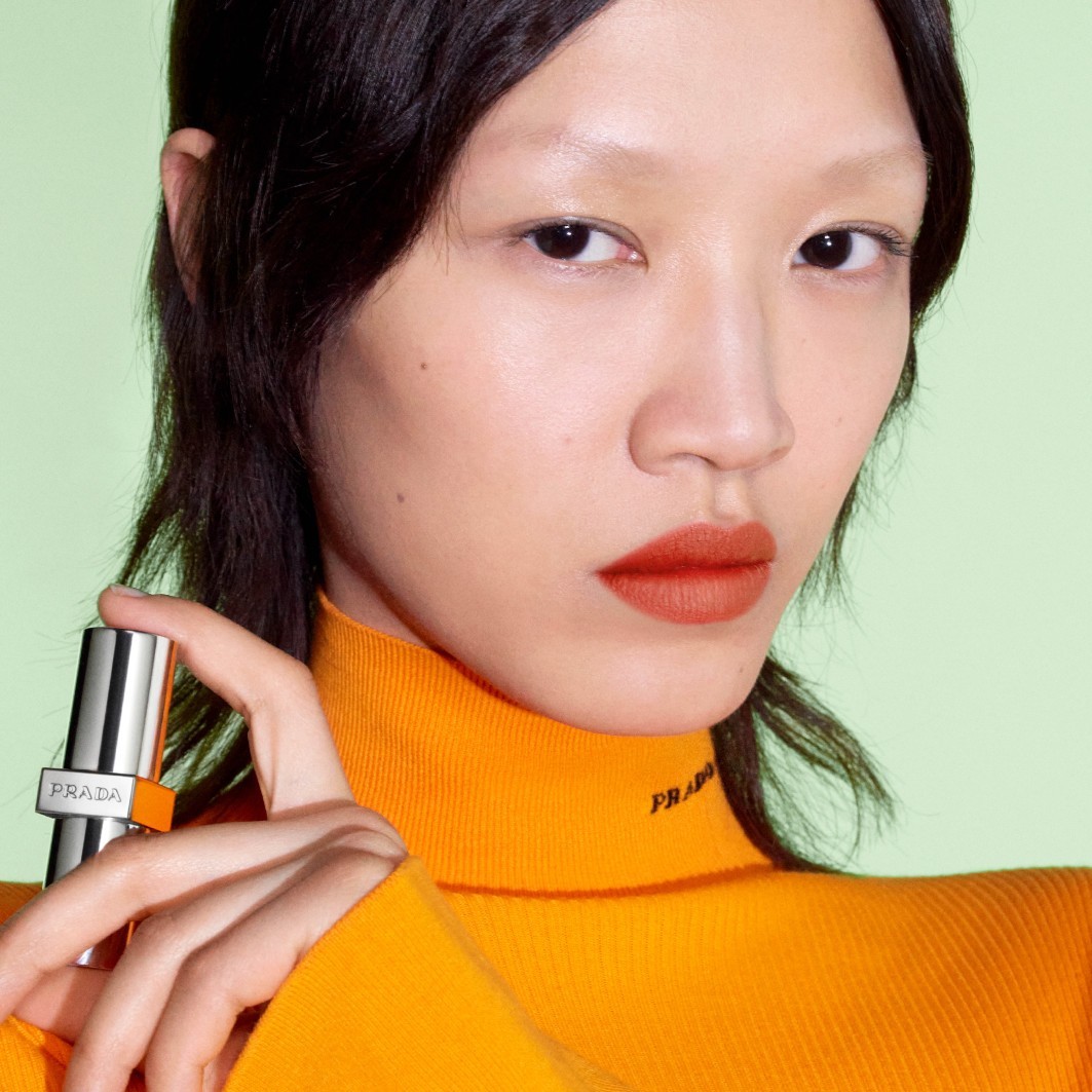 Совет: Чтобы пополнить запас помады, удерживайте квадратное кольцо Prada и нажмите на стержень. Затем нажмите на помаду.