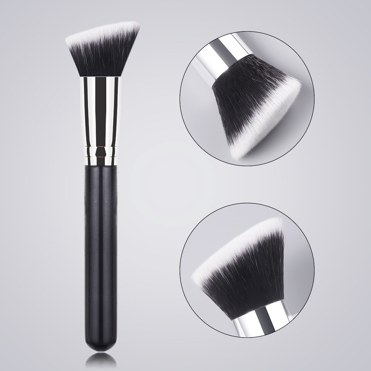 Скошенная кисть для тональной основы Technique PRO 107 Angled Foundation Brush поможет вам добиться безупречного профессионального результата без видимых мазков: головка и щетина имеют особую форму и плотно расположены, что позволяет жидкой, кремообразной или пудровой тональной основе легко и равномерно растушевать средство на коже, создавая безупречный эффект аэрографа. Ультратонкие синтетические ворсинки шелковисто скользят по коже и бережно растушевывают средство, обеспечивая равномерное покрытие - от легкого, естественного до плотного. Благодаря эргономичной ручке из алюминия и дерева кисть надежно лежит в руке и обеспечивает точное нанесение. Этот высококачественный инструмент сохраняет свою форму и мягкость даже при регулярной очистке - идеально подходит как для повседневного использования, так и для создания изысканных макияжей.