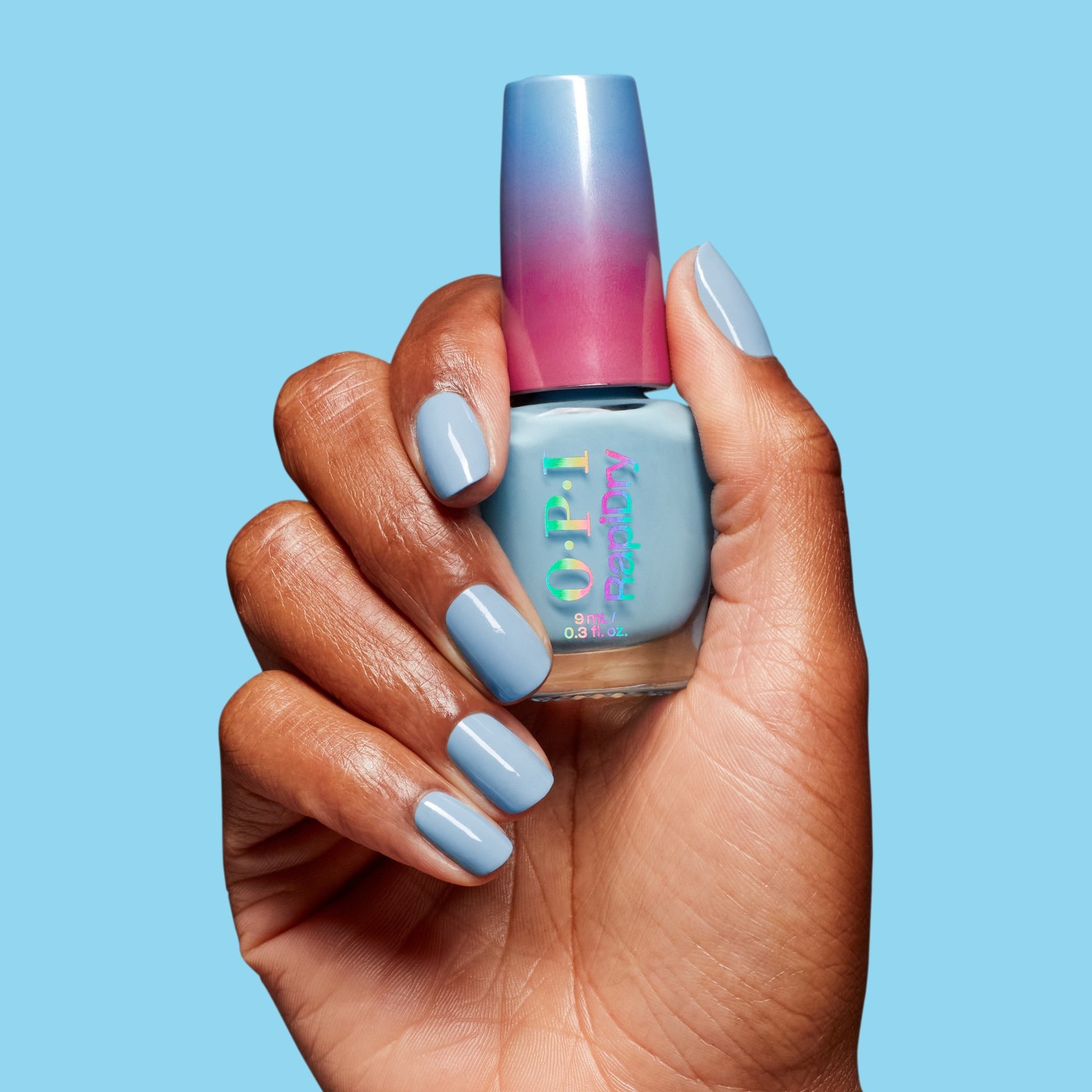 Энергично встряхните лак, чтобы хорошо перемешать содержимое. Подготовьте ногти и кутикулу для оптимального сцепления: отодвиньте кутикулу, подрежьте, подпилите и отполируйте. Нанесите тонкий слой любого быстросохнущего лака RapiDry и запечатайте свободный край ногтя.