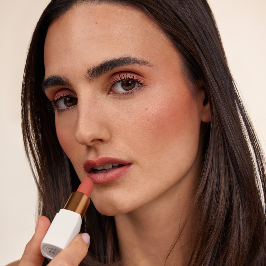 Нанесите стик непосредственно на губы или воспользуйтесь кисточкой для губ. В качестве альтернативы, вы также можете нанести немного цвета на губы пальцами.