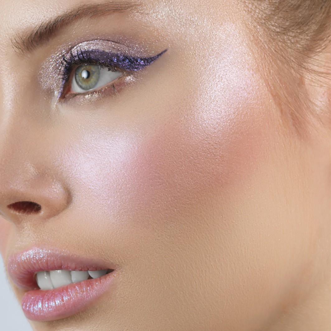 Нанесите спонжем, синтетической кистью или пальцами и растушуйте на щеках, глазах или теле. Можно наносить на чистую кожу или поверх тонального крема.