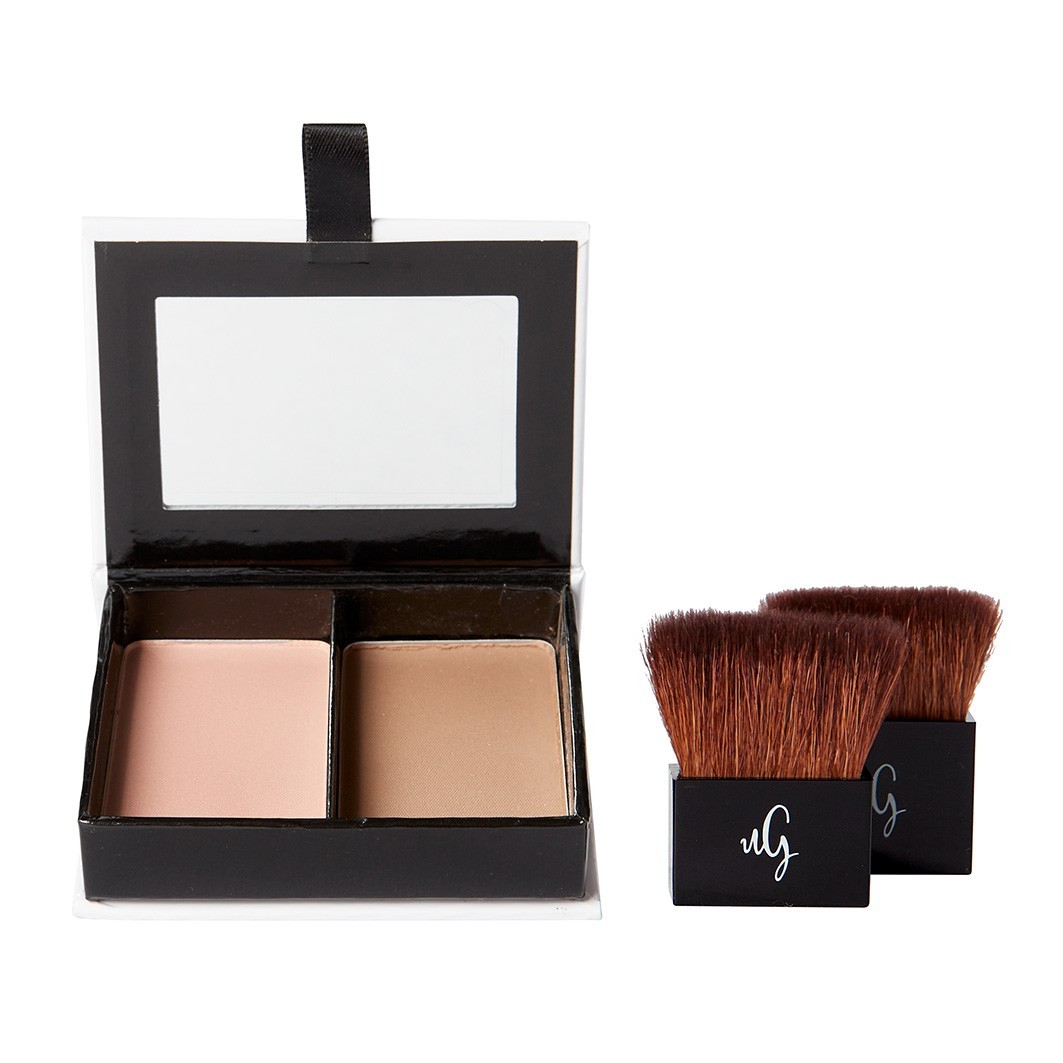 Для легкого нанесения в двухкомпонентной пудренице с зеркальцем и двумя кисточками из стриженой козьей шерсти - для набора идеального количества пудры.