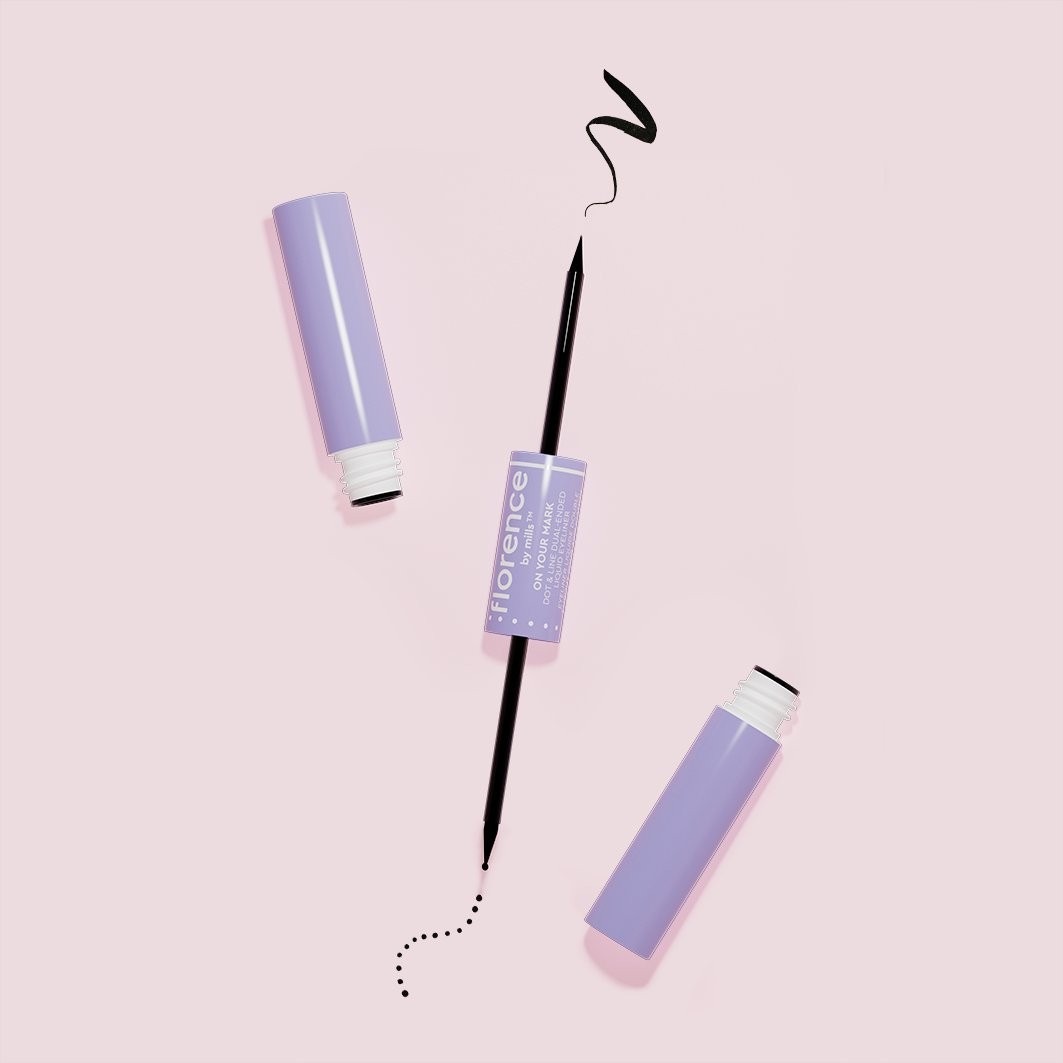 С помощью шарикового наконечника нарисуйте желаемую базовую форму. Соедините точки мягким наконечником. Благодаря двухсторонней жидкой подводке для глаз On Your Mark Dot & Line вы теперь можете создавать самые разные стили.
