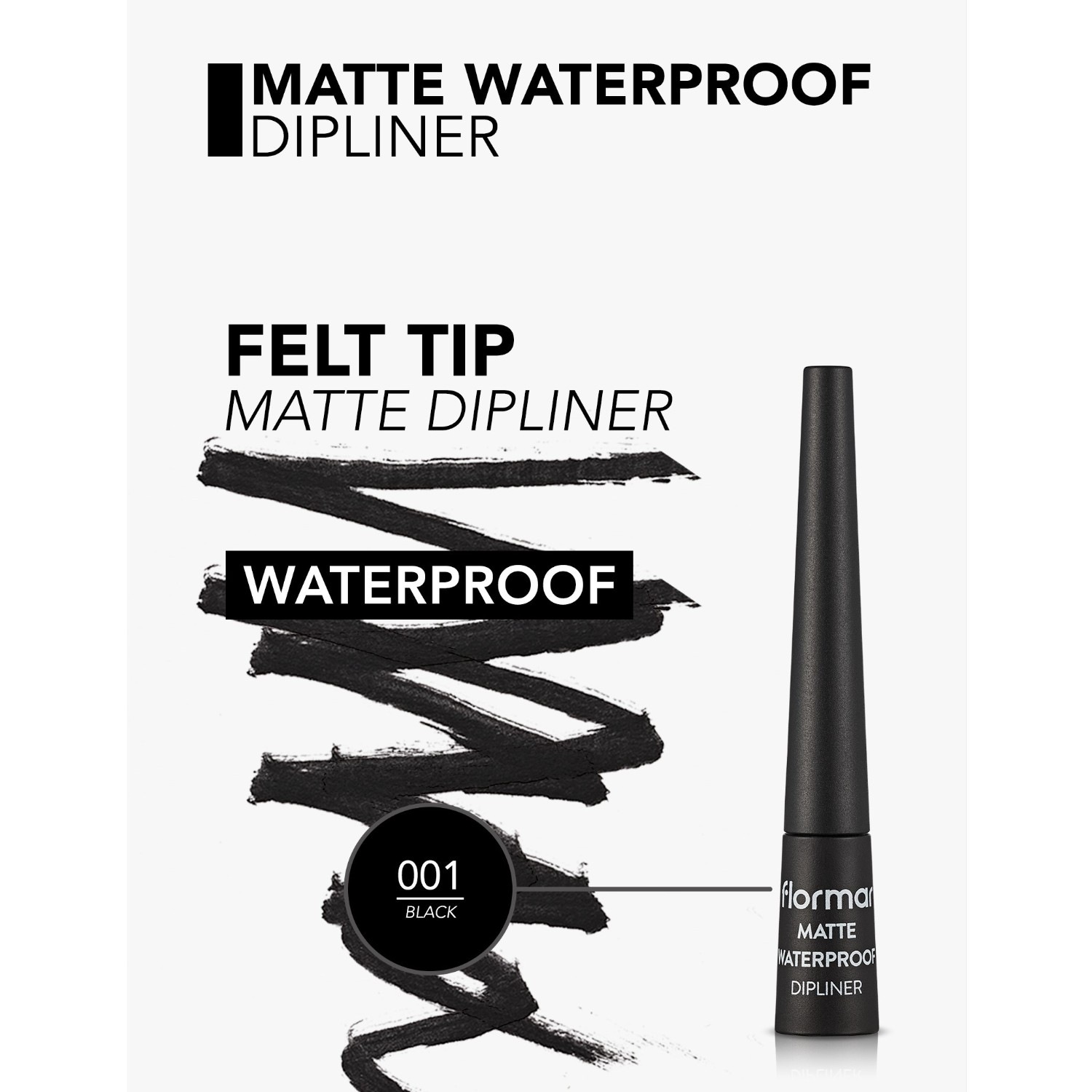 Подводка для глаз matte waterproof dln black Flormar, объем 2.5 мл
