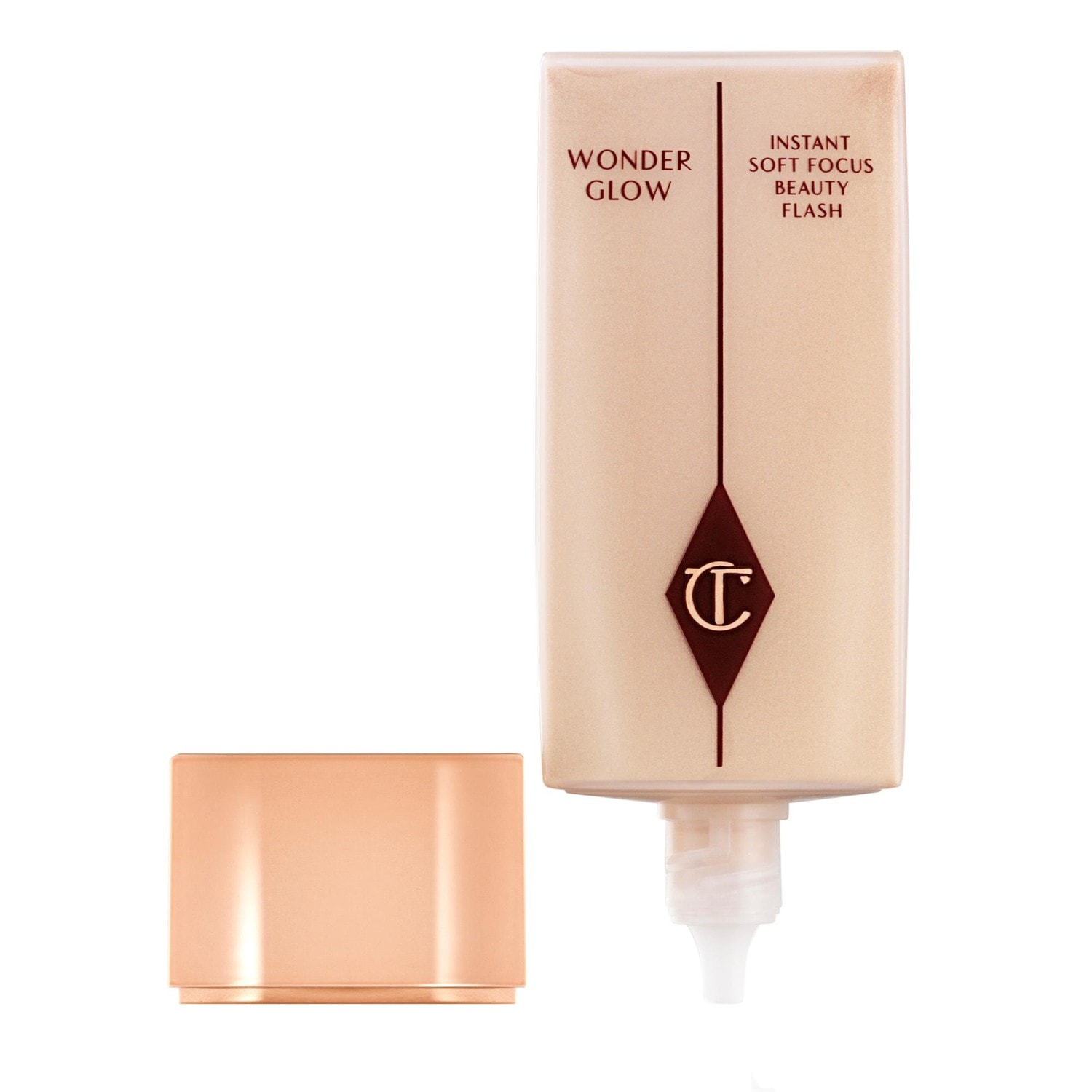 2. Для эффекта «без макияжа» нанесите пальцами праймер Wonderglow Primer, уделяя особое внимание верхней части скул, чтобы приподнять черты лица.