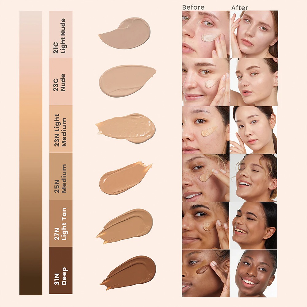 В качестве завершающего этапа ухода за кожей выдавите на ладонь немного BB-крема размером с горошину из тюбика и равномерно нанесите его на лицо. Растушуйте крем чистыми пальцами, спонжем для макияжа или кистью. Начните с центра лица и двигайтесь к краям для равномерного нанесения. Не забудьте аккуратно растушевать шею и линию подбородка, чтобы избежать видимых переходов. Состав: вода, циклопентасилоксан, диоксид титана, оксид цинка, глицерин, каприловый/каприновый триглицерид, ПЭГ-10 диметикон, дипропиленгликоль, диметикон, CI 77492, ниацинамид, цетилэтилгексаноат, дистеардимония гекторит, бетаин, сульфат магния, диоксид кремния, сорбитансесквиолеат, полиметилсилсесквиоксан, 1,2-гександиол, CI 77491, диметикон кроссполимер, CI 77499, триэтоксикаприлилсилан, сополимер акрилатов/диметикона, масло семян моринги масличной, фермент Candida Bombicola/глюкозы/метилрапсового масла, гликозилтрегалоза, гидрогенизированный крахмал пальмитиновой кислоты Гидролизат, токоферилацетат, каприлилгликоль, этилгексилглицерин, гидроксид алюминия, пантенол, гиалуроновая кислота, аденозин, масло листьев/веток апельсина, масло полыни обыкновенной, масло лаванды узколистной, масло плодов литсеи кубебы, экстракт цветков персика, экстракт листьев лавра римского, церамид NP, пропиленгликоль, фитосфингозин, гидрогенизированный лецитин, миристиновая кислота, стеариновая кислота, токоферол.