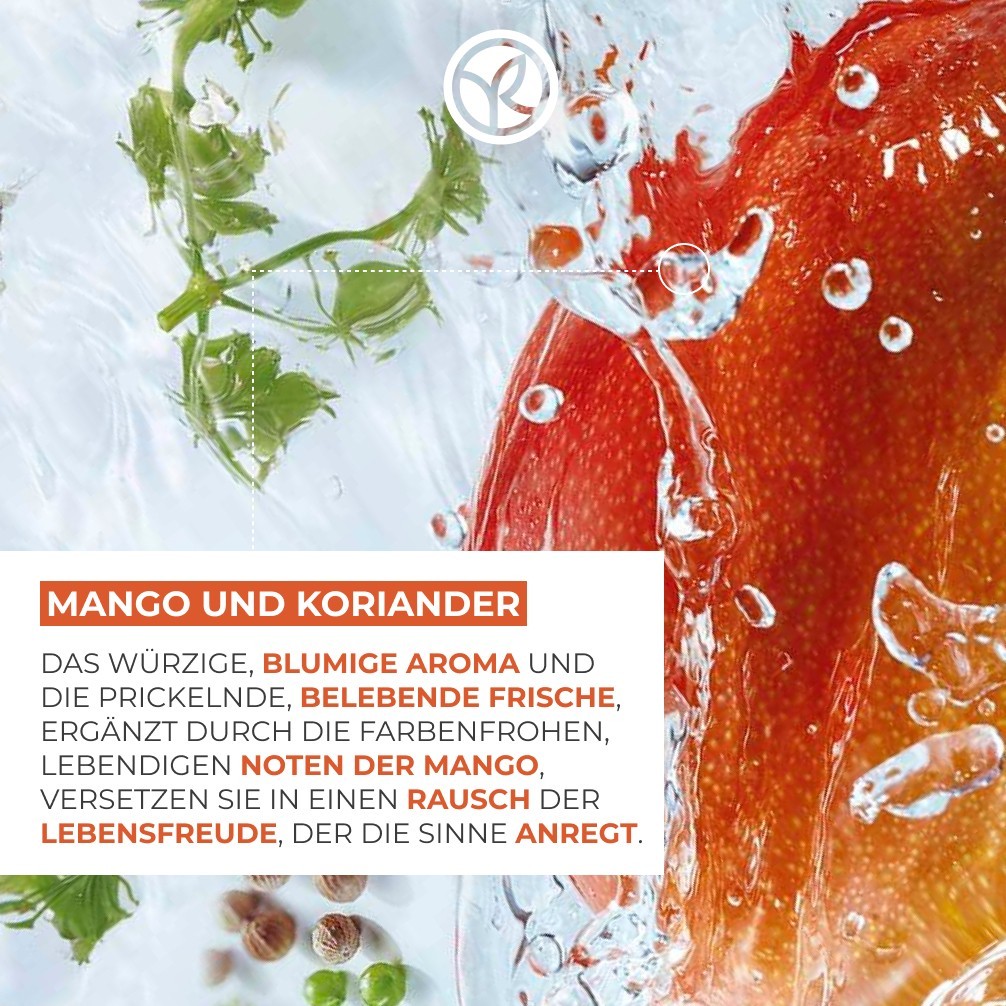 Состав: вода, масло семян подсолнечника (Helianthus annuus), каприловый/каприновый триглицерид, глицерин, сорбитанстеарат, вода цветков василька синего (Centaurea cyanus), сесквистеарат метилглюкозы, стеариновая кислота, пальмитиновая кислота, масло ши (Butyrospermum parkii), гидроксиацетофенон, парфюмерная композиция/ароматизатор, ксантановая камедь, сорбиновая кислота, лимонен, бензоат натрия, лимонная кислота, сорбат калия, экстракт плодов манго (Mangifera indica), линалоол