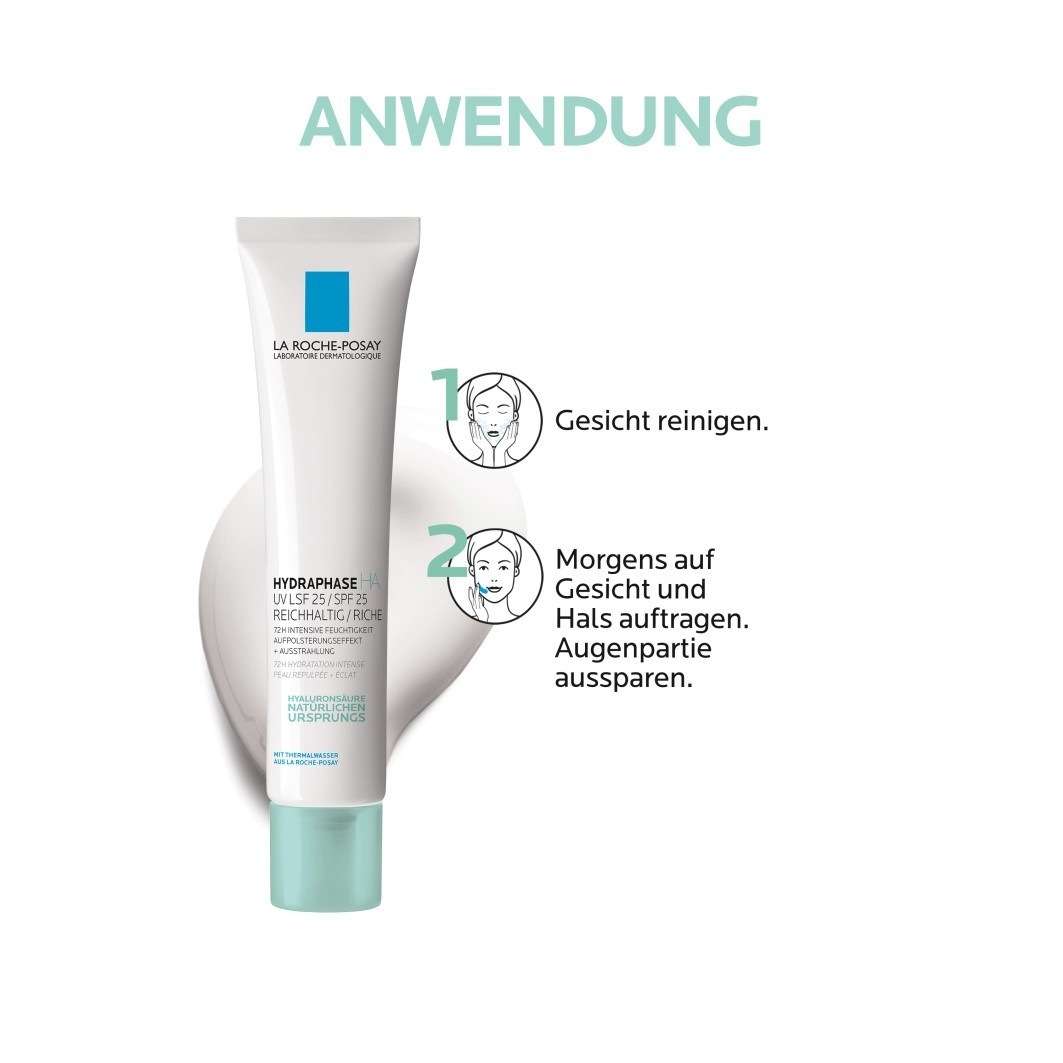 Наносите La Roche-Posay HYDRAPHASE HA UV Rich ежедневно утром на очищенную кожу лица, шеи и декольте и тщательно распределяйте.