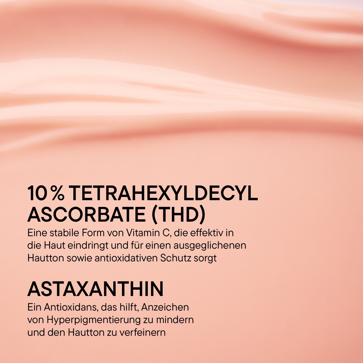 Состав: AQUA/WATER/EAU, ТЕТРАГЕКСИЛДЕЦИЛ АСКОРБАТ, ГЛИЦЕРИН, ГИДРОГЕНИЗИРОВАННЫЕ РАСТИТЕЛЬНЫЕ ГЛИЦЕРИДЫ, ЦЕТЕАРИЛОВЫЙ СПИРТ, МАСЛО СЕМЯН МАКАДАМИИ ЦЕЛОСТНОЙ (MACADAMIA INTEGRIFOLIA), СКВАЛАН, СТЕРОЛЫ РАПСОВОГО (BRASSICA CAMPESTRIS), ЦЕТИЛФОСФАТ КАЛИЯ, ПЕНТИЛЕНГЛИКОЛЬ, МАСЛО АВОКАДО (PERSEA GRATISSIMA), МАСЛО СЕМЯН КУНЖУТА (SESAMUM INDICUM), ТОКОФЕРИЛАЦЕТАТ, ЭКСТРАКТ ПЛОДОВ ГРЕЙПФРУТА (CITRUS PARADISI), HAEMATOCOCCUS PLUVIALIS ЭКСТРАКТ, ЭКСТРАКТ ФУКУСА ПУЗЫРИСТОГО, ЭКСТРАКТ ДЫМЯНКИ ЛЕКАРСТВЕННОЙ, ЭКСТРАКТ НАСТУРЦИИ ЛЕКАРСТВЕННОЙ, ЭКСТРАКТ КОРНЯ ЖЕНЬШЕНЯ, ЭКСТРАКТ ЛИСТЬЕВ РОЗМАРИНА ЛЕКАРСТВЕННОГО (ROSMARINUS OFFICINALIS), ЭКСТРАКТ НОЦЕРНИИ УЗКОВИДНОЙ (SCROPHULARIA NODOSA), ЭКСТРАКТ ЛИСТЬЕВ КРАПИВЫ ДВУХСТОРОННЕЙ (URTICA DIOICA), ЭКСТРАКТ РЕПЕШКА ОБЫКНОВЕННОГО (AGRIMONIA EUPATORIA), МАСЛО СЕМЯН ПОДСОЛНЕЧНИКА (HELIANTHUS ANNUUS), ПАНТЕНОЛ, ГИАЛУРОНАТ НАТРИЯ, ГЛУТАТИОН, ТОКОФЕРОЛ, СОРБИТ, ГИДРОГЕНИЗИРОВАННЫЕ ПАЛЬМОВЫЕ ГЛИЦЕРИДЫ, ЭТИЛГЕКСИЛГЛИЦЕРИН, ЛИМОННАЯ КИСЛОТА, ПАНТОЛАКТОН, ФЕНОКСИЭТАНОЛ, БЕНЗИЛОВЫЙ СПИРТ, ЦИТРОНЕЛЛОЛ