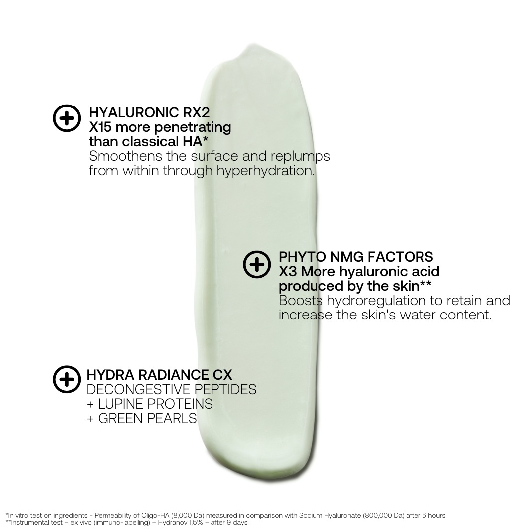 Состав: вода (вода / Eau), гидрогенизированный дидецен, глицерин, диметикон, бутиленгликоль, бегениловый спирт, пентаэритритилтетраизостеарат, глицерет-26, Изонилизононаноат, цетеариловый спирт, глицерилстеарат, стеарат ПЭГ-100, полиакрилат натрия, каприлилгликоль, 1,2-гександиол, диметикон ПЭГ-10, гидролизованный белок люпина, пирролидонкарбонат натрия, полисорбат 60, диоксид титана, циклодекстрин, трегалоза, мочевина, циклопентасилоксан, слюда, гиалуронат натрия, тридецет-6, лактат натрия, кроссполимер дивинилдиметикона/диметикона, экстракт клеток листьев адениума тучного, O-цимен-5-ол, пентиленгликоль, серин, феноксиэтанол, стеарет-20, пропандиол, динатриевая соль ЭДТА, аденозин, диметикон ПЭГ/ППГ-18/18, альгин, динатриевая соль Фосфат, глицерил полиакрилат, пуллулан, гиалуроновая кислота, фенэтиловый спирт, каррагинан натрия, сорбат калия, экстракт корня вяза Давидова, N-гидроксисукцинимид, этилгексилглицерин, экстракт шалфея мускатного (Salvia Sclarea), фосфат калия, экстракт культуры клеток плодов яблони домашней (Malus Domestica), цитрат натрия, морская соль (Maris Sal), бензоат натрия, хризин, пальмитоил трипептид-1, ксантановая камедь, лимонная кислота, пальмитоил тетрапептид-7, хлорид натрия, сульфаты натрия, лецитин, CI 19140 (желтый 5), CI 42090 (синий 1).