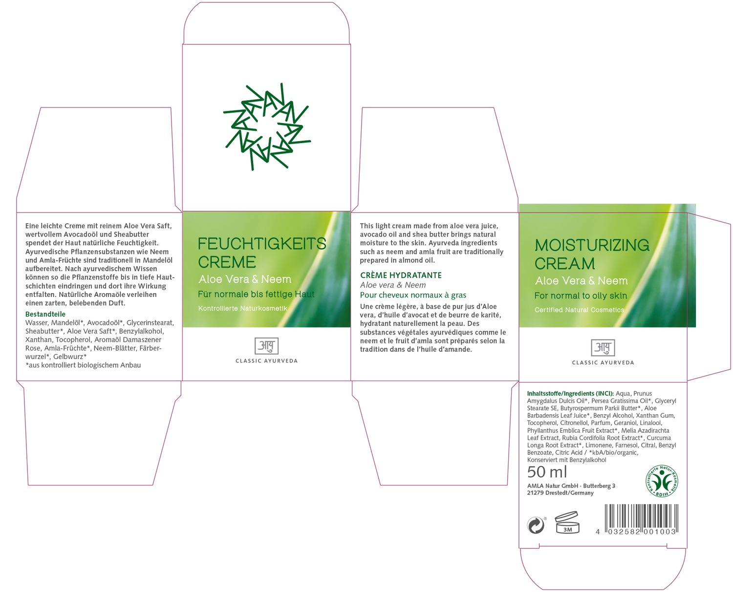 Крем для лица feuchtigkeitscreme, bdih Classic Ayurveda, объем 50 мл