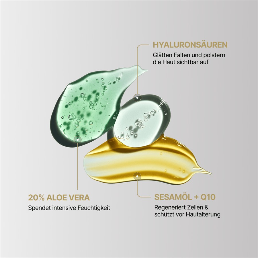 Состав: вода, сок листьев алоэ вера, масло семян кунжута индийского, глицерин, денатурированный спирт, пантенол, пропиленгликоль, парфюмерная композиция, коко-каприлат, феноксиэтанол, карбомер, пропандиол, сорбитол, токоферилацетат, лимонная кислота, гиалуронат натрия, гидроксид натрия, ментиллактат, этилгексилглицерин, бензоат натрия, убихинон, сорбат калия, экстракт ламинарии сахаристой, экстракт плодов брусники обыкновенной, экстракт плодов малины арктической, альфа-изометил ионон, кумарин, цитраль, линалоол, лимонен, токоферол, масло семян подсолнечника однолетнего.